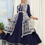 Rayon Calf Length Solid Flared 3/4 Sleeves V-Neck Kurta, Bottom With Dupatta