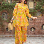Cotton Hip Length Printed Straight 3/4 Sleeves Mandarin Kurta Bottom Set
