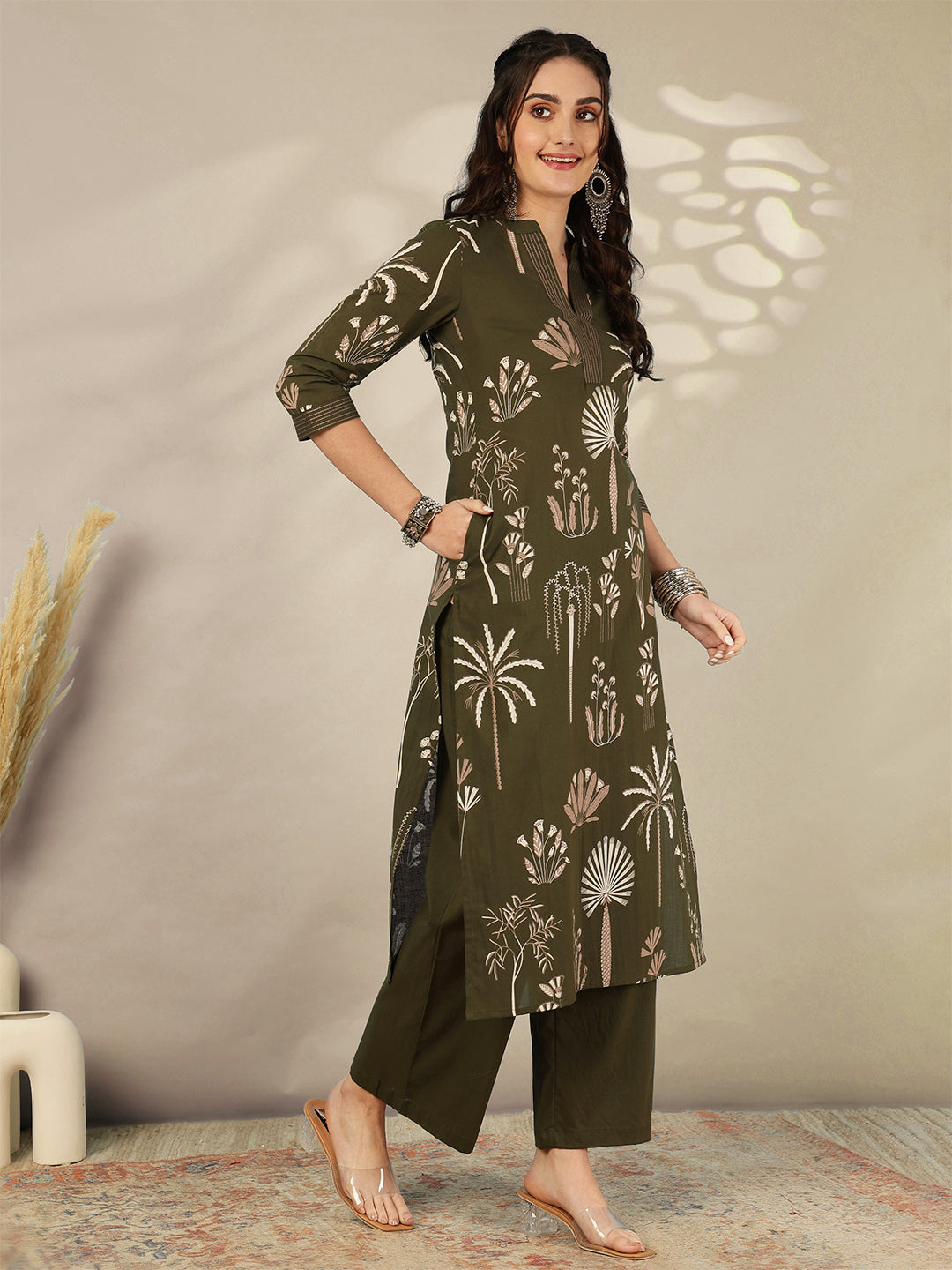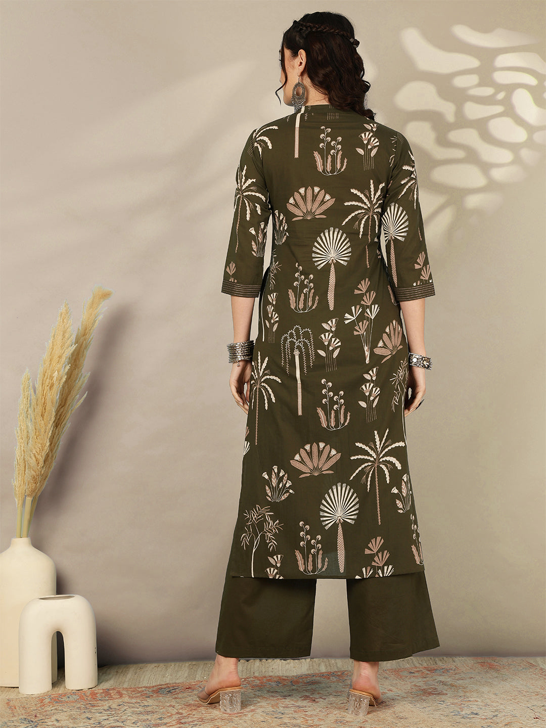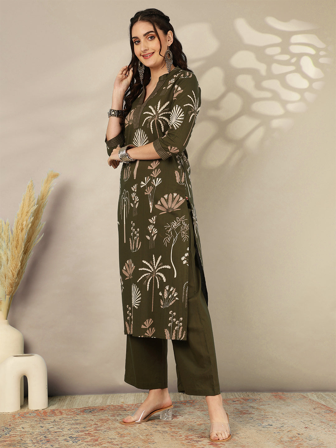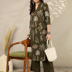 Rayon Calf Length Printed Straight 3/4 Sleeves Mandarin Neck Kurta Bottom Set