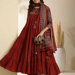 Cotton Calf Length Solid Three-Quarter Sleeves Key Hole Neck Anarkali Kurta Bottom With Dupatta