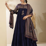 Cotton Calf Length Solid Three-Quarter Sleeves Key Hole Neck Anarkali Kurta Bottom With Dupatta