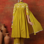 Rayon Calf Length Solid 3/4 Sleeves Round Neck A-Line Kurta Bottom With Dupatta