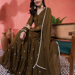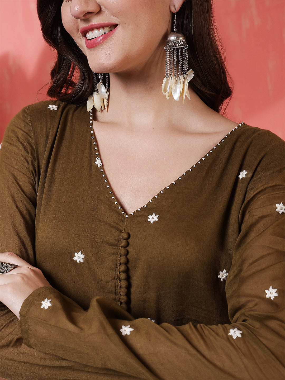 Cotton Ankle Length Printed Full- Sleeves V-Neck Tired Kurta Suit Set