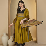 Rayon Calf Length Solid 3/4 Sleeves V-Neck Flared Kurta Suit Set