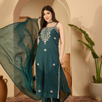 Cotton Calf Length Solid Sleeveless V-Neck Straight Kurta Suit Set
