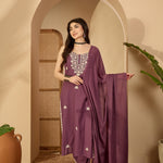 Cotton Calf Length Solid Sleeveless V-Neck Straight Kurta Suit Set