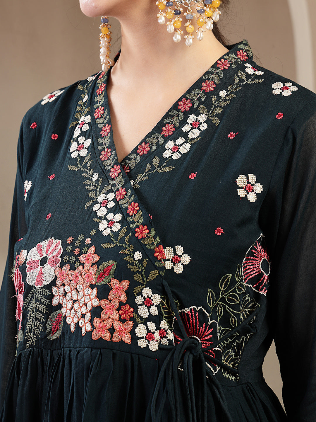 Style and Cut - Top (Flared Solid Embroidered Kurta Set)