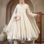 Malmal Calf Length Solid Full Sleeves Anrakha Neck Anarkali Kurta Suit Set With Dupatta