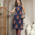 Straight Printed Cotton Round Neck Kurta Set