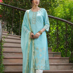 Sky Blue Georgette Festive Printed Straight Kurta Dupatta Set