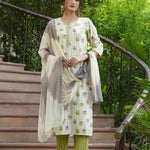 Green Rayon Casual Wear Printed Straight Kurta Pant Dupatta Set