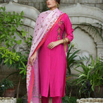 Fuchsia Mono Viscose Festive Wear Embroidered Straight Kurta Pant Dupatta Set
