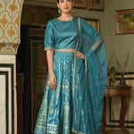 Teal Santoon Slub Festive Foil Printed Straight Lehenga Choli Set