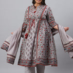 Grey Cambric Fusion Wear Printed A-Line Kurta Sets