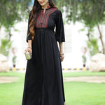 Black Rayon Embroidered & Printed High-Slit Kurta Sets