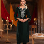 Jadegreen Velvet Embroidered Straight Kurta Sets