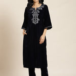 Navy Velvet Embroidered Straight Kurta Sets