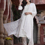 Off-White Cotton Embroidered Straight Kurta Pant Dupatta Set