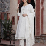 Off-White Cotton Embroidered Straight Kurta Pant Dupatta Set