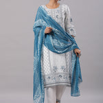 Sky-Blue Rayon Staple Kalamkari Printed Kurta, Pants And Dupatta Set