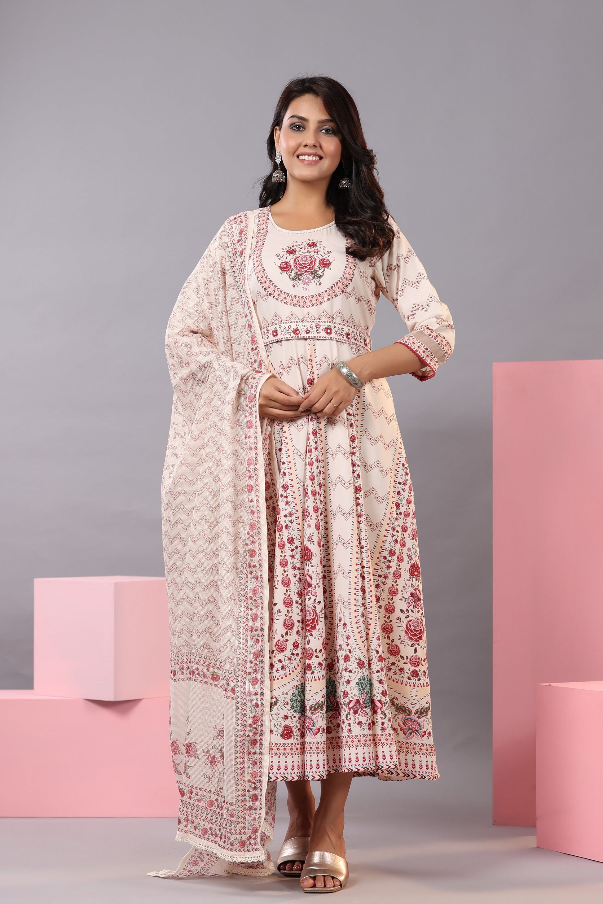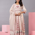 Ecru Rayon Floral Printed Kurta And Dupatta Set