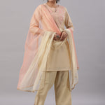 Gold Modal Chanderi Embroidered Kurta, Pants And Dupatta Set
