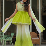 Green Georgette Embroidered Kurta, Palazzo And Dupatta Set