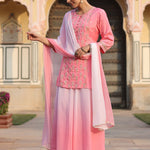 Pink Shantoon Embroidered Kurta, Palazzo And Dupatta Set