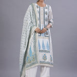 Blue Rayon Printed Kurta, Pants And Dupatta Set