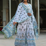 Skyblue Cambric Floral Placement Kurta Dupatta Sets