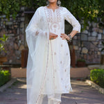 Off-White Chinnon Embroidery Kurta Pant Dupatta Set
