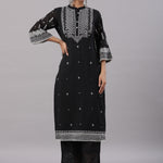 Black Cotton Dobby Embroidered Kurta, Pant & Dupatta Set