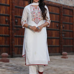 Multi-Coloured Cotton Dobby Embroidered Kurta, Pant & Dupatta Set