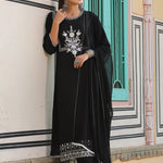 Black Rayon Lurex Embroidered Kurta, Pant & Dupatta Set