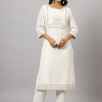 Off-White Chinnon Embroidered Kurta, Pants And Dupatta Set