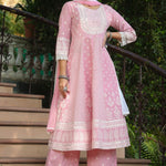 Pink Cambric Nazneen Chiffon Dupatta Printed Flared Kurta Sets