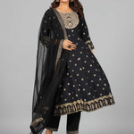 Black Rayon Printed With Embroidery Kurta, Pants & Dupatta Set