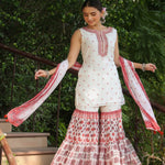 Maroon Ethnic Motif Printed Georgette Kurta Sharara & Dupatta Set With Thread Work Embroidery