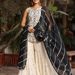 Off-White & Black Pure Cotton Embroidered Short Kurta Sharara & Dupatta Set