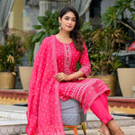 Pink Ethnic Motif Printed Liva Rayon Kurta Pant And Dupatta Set With Beads Sequins & Lace