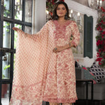 Pink Floral Printed Liva Rayon Kurta, Pant And Dupatta Set With Mirror & Thread Work
