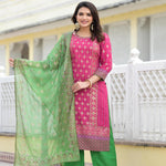 Fuchsia Ethnic Motif Printed Muslin Kurta Pant With Dupatta Set With Beads & Sequins