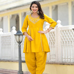 Mustard Solid Viscose Kurta & Pant Set With Zari & Mirror Work