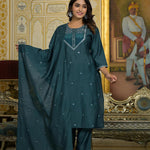 Rama Green Thread Embroidered Viscose Kurta Pant And Dupatta Set With Sequins Work
