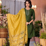 Green Zari Embroidered Viscose Kurta Pant And Dupatta Set With Tassels On Dupatta