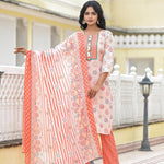 Peach Floral Printed Cotton Kurta Pant With Dupatta Set With Sequins & Thread Work