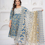 Rama Blue Floral Print Kurta Bottom With Dupatta Set