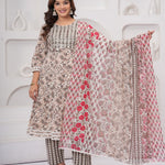 Peach Floral Print Kurta Bottom With Dupatta Set