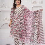 Peach Floral Print Kurta Bottom With Dupatta Set