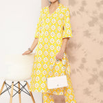 Printed Pure Cotton Calf Length V Neck Kurta Set